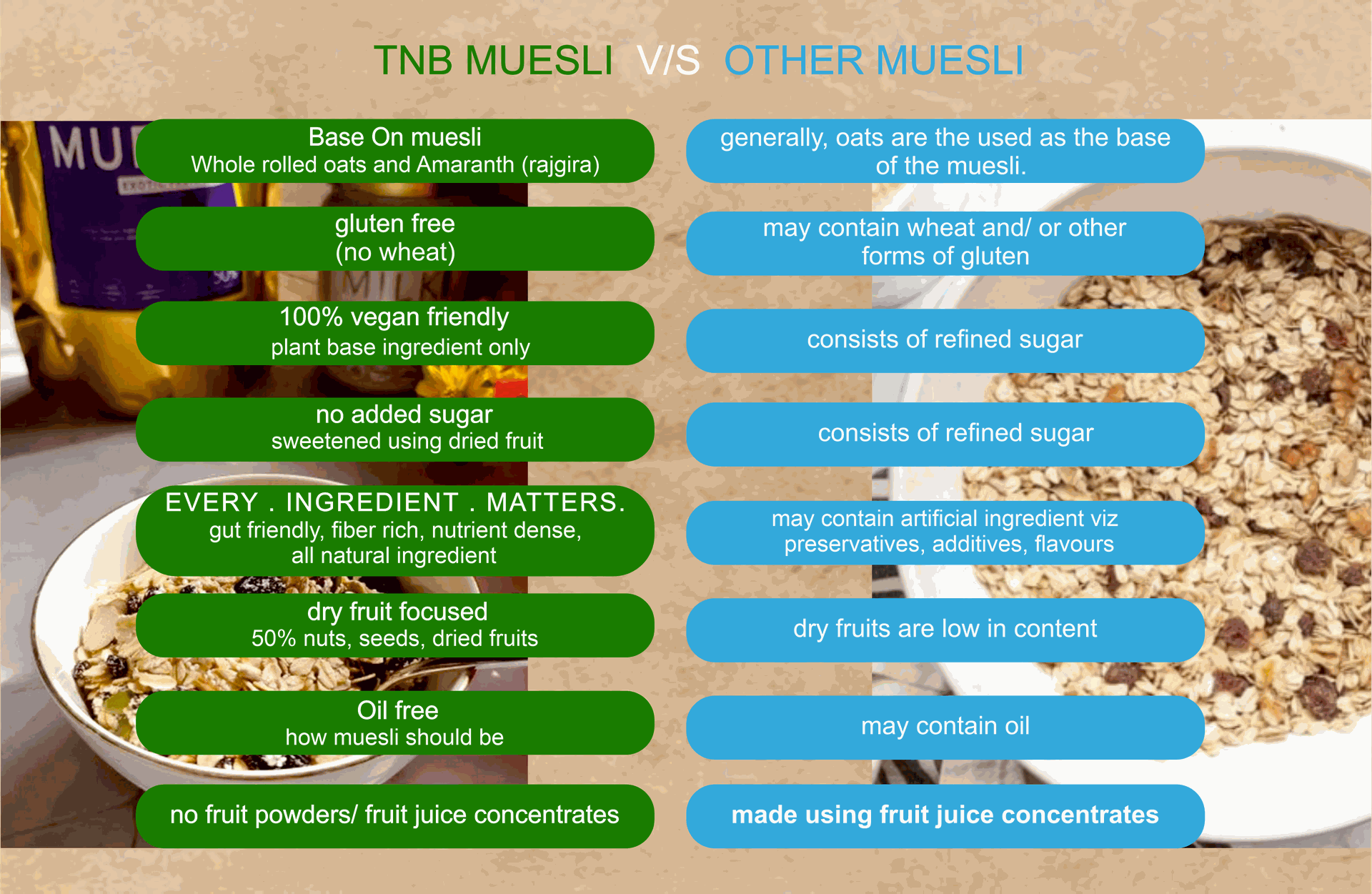 Choose from a variety of categories viz. Granolas, Porridges, Pancake mixes, Millet Cereals, Mueslis, Oatmeals,