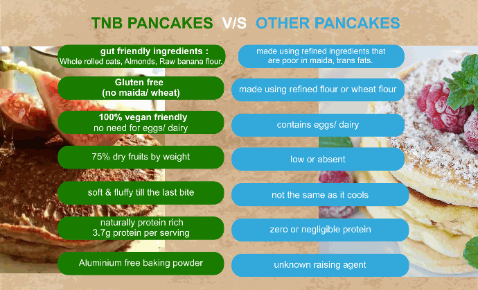 75% nuts- dried fruits-seeds by weight, gluten free (no wheat/ no refined flour), vegan friendly. Just add milk to make the batter.