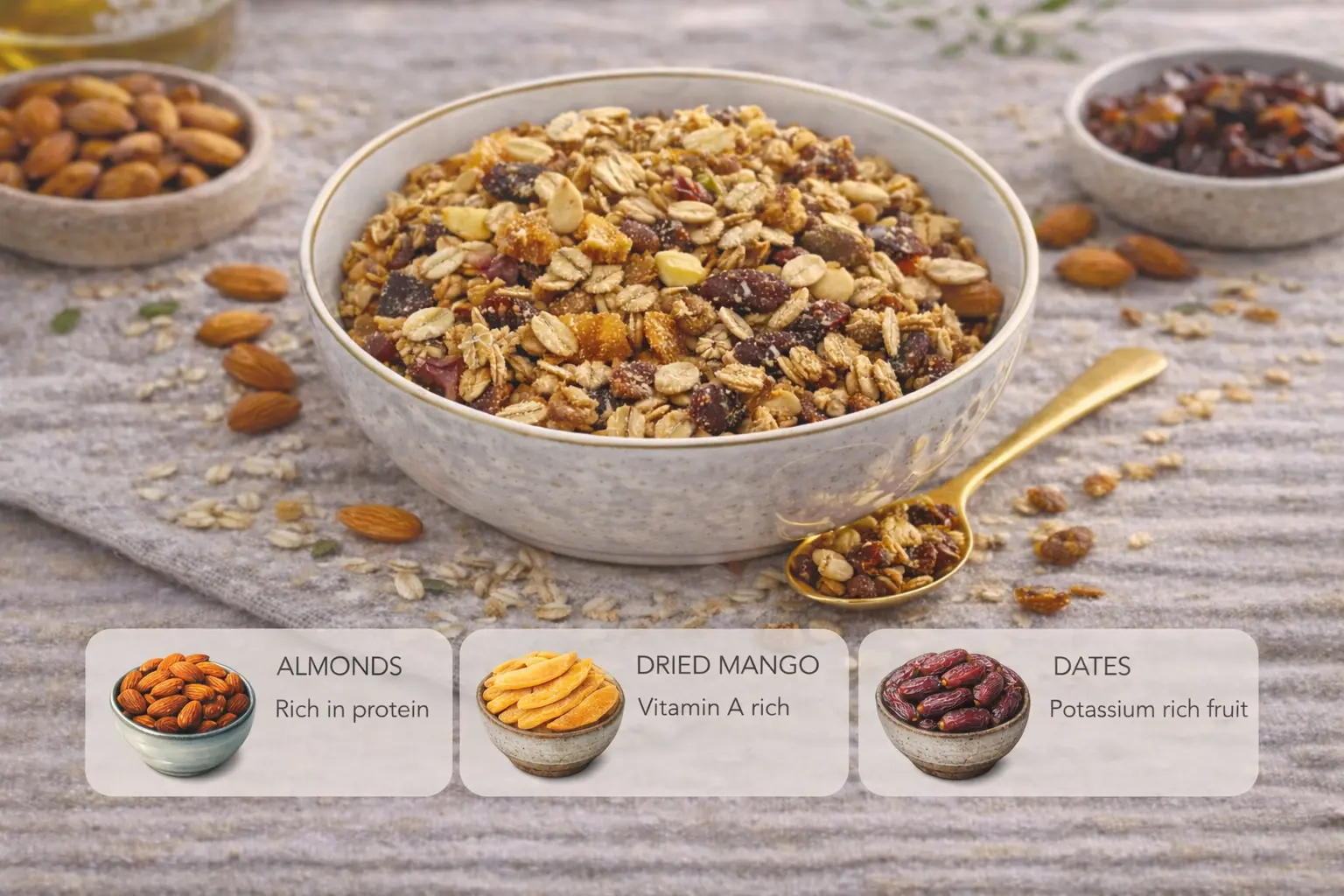 Fuel your day with crunchy Granola goodness — because every ingredient matters.